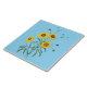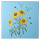 Coreopsis amarelo brilhante de Redoute em um fundo azul bebê.