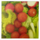 Este azulejo espetacular apresenta uma fotografia de uma mistura de ingredientes salados num coentro. A fotografia saborosa inclui tomates, rabanetes, cebolas de primavera e alfaces.