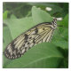 Esta azulejo incrível mostra uma fotografia de uma bela borboleta tropical. Essa espécie é chamada de Borboleta-pipa-de-papel (Idea leuconoe). Ele tem lindas marcas pretas e amarelas claras por todas as asas. Tem suas asas dobradas enquanto repousa em algumas folhas. Essa borboleta também é conhecida como borboleta de arroz. Vem do sul da Ásia e da Indonésia. A fotografia foi tirada usando macrofotografia para um resultado incrivelmente detalhado.