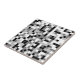 Esse azulejo cerâmico apresenta um padrão geométrico monocromático em preto, cinza e branco. Os quadrados são coloridos em um padrão aleatório e você pode editar as cores na ferramenta Design.