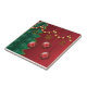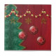 Camadas de fractais compõem este desenho estilizado de Natal. Um fundo vermelho suave, uma árvore verde espinhosa, estrelas douradas e flocos de neve pendurados em uma corrente de contas vermelhas e douradas, e três bolas vermelhas com um desenho dourado espiralado penduradas na frente.