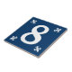 Azulejo personalizado com azulejo de parede numerado com tipografia elegante. Boa ideia de presente para uma nova festa de aquecimento da casa e da casa. Cores de texto e fundo personalizáveis. Marinho azul e parede branca, placa de decor inicial.