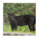 Gato de pantera preta de passeio na grama e em área arborizada.