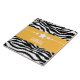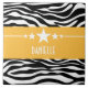 Tendy e moderno Azulejo Sassy Star Zebra, com um fundo de impressão em branco e preto chico e uma borda amarela ousada, enfeitiçada com um divertido motivo de estrela. Este design feminino pode ser personalizado com o texto personalizado de sua escolha. Clique em "Personalizar" para encontrar mais opções de personalização.