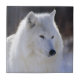 Fotografia de um lobo árctico cortada na cabeça e nos ombros impressos nas bordas do azulejo.
