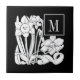 Este azulejo bonito é personalizable com seu monograma. Caracteriza uma ilustração no estilo do nouveau da arte, do daffodils de florescência graciosos. Branco no preto. Apenas datilografe dentro sua inicial na caixa sob "personalizam-na". Use seu azulejo como é ou escolha a opção colocá-la em uma caixa do trinket! Também disponível no verde.