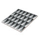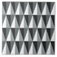 As fileiras de triângulos pretos, brancos e cinzentos formam um teste padrão tridimensional.