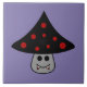 Um vampiro bonito do cogumelo dos desenhos animados em um fundo roxo.