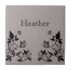 Borboleta doce e delicada Azulejo floral com fundo de cinza empoeirado e borboletas ebonadas e ornamentos de vinha floral. Este elegante azulejo floral complementaria qualquer decoração! Fácil de personalizar, basta adicionar o texto personalizado de sua escolha nos campos de texto fornecidos. Clique no botão "Personalizar a TI" para encontrar opções adicionais de personalização.
