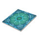 Azulejo cerâmico com um desenho fractal original de Anne Vis em azul fresco, verde e lacre. Perfeito para o seu banheiro!
