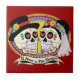 "El Amor es Para Siempre" casal de casamento do crânio mexicano. O escrevendo na faixa está em espanhol e diz "O amor é para sempre". Este design vem em versões inglesa e espanhola, e há muitos outros produtos com este design para o seu casamento ou tema de festa do Dia de los Muertos! Você pode alterar a cor do plano de fundo e adicionar texto para personalizar este azulejo. Veja também a nossa versão em inglês!
