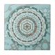 Este design de círculo concêntrico apresenta camadas de padrões brancos, turquesas e marrons inspiradas por teclas celtas e índias, como vinhas, fitas e flores de lótus. Este azulejo pode ser enquadrado para criar uma trivit ou colocar dentro a caixa de presente de madeira. Azulejos sem um quadro também ajustado a caixa de presentes para criar um conjunto correspondente.