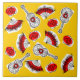 Design de Whimsical desenhado em estilo retrô, com lembranças de um feriado espanhol; uma guitarra de ferro em formas brutas, um fã de legado e uma rosa vermelha. Um design personalizável em preto, branco, vermelho e ouro amarelo para você personalizar com seu próprio texto, imagens e ideias. Uma imagem de arte digital original.