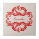 O Azulejo elegante e sofisticado de "Chic Damask", com um fundo bege suave, e um ornamento na moda de "damask" florescem em vermelho escuro. Esta design moderna é fácil de personalizar com o seu próprio texto. Clique em "Personalizar" para encontrar mais opções de personalização.