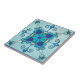 Um azulejo artístico para banheiro ou cozinha com um padrão geométrico floral inspirado no Mediterrâneo em cores lacrimogêneas, azuis e turquesas.