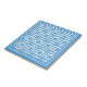 Um azulejo muito chique, com um teste padrão de motivos tradicionais da tapeçaria de Galês no azul brilhante em um fundo branco. Adicione um quadro de madeira ao uso como um Trivet.