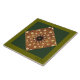 Um padrão indeciso de cores ricas e autóctones faz disso um trivial perfeito. Também pode funcionar como azulejo decorativo. O padrão de inset é formado usando fotos de abstrato do fechamento de um candelabro.