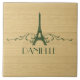 Azulejo francês florescente elegante e chico, com fundo de aparência falsa em madeira e design de torre Eiffel em verde escuro, com cascatas de espirais na moda. Esta design de moda e moda é fácil de personalizar com o texto personalizado de sua escolha. Clique em "Personalizar" para encontrar mais opções de personalização.