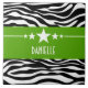 Tendy e moderno Azulejo Sassy Star Zebra, com um fundo de impressão em preto-e-branco e uma ousada borda verde, encantada, adornada com um divertido motivo de estrela. Este design feminino pode ser personalizado com o texto personalizado de sua escolha. Clique em "Personalizar" para encontrar mais opções de personalização.