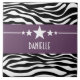 Tendy e moderno Azulejo Zebra Sassy Star apresentando um fundo de impressão em branco e preto chico e uma borda roxa ousada adornada com um divertido motivo de estrela. Este design feminino pode ser personalizado com o texto personalizado de sua escolha. Clique em "Personalizar" para encontrar mais opções de personalização.