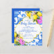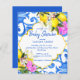 Azulejos azuis Bougainvillea e limão Amalfi Positano estilo Mediterrâneo chá de fraldas convite de orçamento estilo modelo Marrocos esculpido na fronteira, neutro em relação ao gênero.