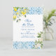 Anuncie seus próximos núpcias com um toque de charme italiano usando nossos Azulejos Italianos e Cartão de Save The Date de Limão. Este cartão encantador captura a essência do Mediterrâneo com seu clássico motivo de azulejo azul, reminiscente das belas fachadas encontradas em vilas italianas. Adornado com limões vibrantes e flores de limoeiro, este design exala calor e sofisticação, estabelecendo o tom perfeito para a celebração do seu casamento.