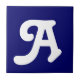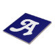 Azulejos cerâmicos. Azulejos de letras maiúsculas ou minúsculas. Você personaliza com a letra ou letras necessárias para seu azulejo cerâmico ou sinal de mosaico. Azulejo para sinais à prova de tempo, números de casa. Branco sobre fundo azul.