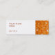 Cartão de visita com um padrão impresso estilizado glamouroso de "espelho da discoteca" em tons de laranja, e texto cor de laranja sobre fundo branco. Pode ser usado como um fundo para o seu próprio texto, imagens e ideias. Observe que esta é uma imagem de arte digital impressa, ela não brilha ou contém espelhos reais ou brilho.