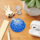 Chaveiro com um padrão impresso estilizado, divertido e estilizado, de "espelho de disco" em tons de azul e branco. Pode ser usado como um fundo para o seu próprio texto, imagens e ideias. Observe que esta é uma imagem de arte digital impressa, ela não brilha ou contém espelhos reais ou brilho.