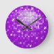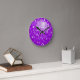 Relógio de parede com um padrão impresso de "azulejo espelho disco" divertido e estilizado em tons de roxo e branco. Pode ser usado como um fundo para seu próprio texto, imagens e ideias. Observe que esta é uma imagem de arte digital impressa, ela não brilha ou contém espelhos reais ou brilho.