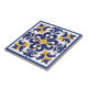 💛 💙 A cerâmica é uma bela peça quadrada O design apresenta um padrão azulejo tradicional, uma marca da arte de azulejo portuguesa e espanhola. O motivo central é um padrão geométrico complexo, onde matizes azuis de cobalto profundos e azulejos vibrantes amarelo-ouro se entrelaçam num design simétrico. O azul é rico e impressionante, formando intrincados padrões florais e de videira, enquanto o amarelo adiciona um contraste quente, destacando certos elementos como as bordas das flores ou das peças centrais. O fundo do azulejo é um branco limpo, intocado, que torna as cores azul e amarela ainda mais pop. O design é bordado por uma delicada armação azul, que também incorpora alguns sotaques amarelos, dando-lhe uma sensação de completude. O efeito global é ornamentado e harmonioso, refletindo o significado histórico e cultural da arte azulejo. O azulejo seria provavelmente parte de um muro mural ou decorativo maior, contribuindo para uma exibição grandiosa e visualmente deslumbrante.