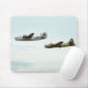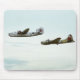 Foto de um B17 e de um B24 que voam de lado a lado em um céu azul com nuvens dispersadas.
