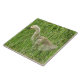 Azulejo Cerâmico de Ganso Canadense Gosling na Grama. Este único ganso canadense bebê era o único que o casal de gansos adultos tinha deixado de sua ninhada e ambos os gansos pais estavam por perto guardando este pequeno enquanto ele perseguia insetos na margem do lago.