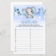 Jogo do chá de fraldas Baby ABC para a festa de chá de fraldas do tema do elefante azul para um menino.