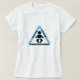 t-shirt divertida da maternidade, com um sinal de precaução azul e branco, com um ícone de bebê dentro. Texto gráfico preto ao redor do quadro azul do sinal, lê Em Construção e Aviso! Camisa casual excelente para o seu guarda-roupa.