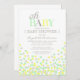 Este convite para chás de fraldas moderno e refinado apresenta confete multicolorido em amarelo, aqua e cinzas. O título correspondente diz "Oh Bebê" seguido de todos os detalhes do seu evento. As cores de confetti podem ser personalizadas para corresponder ao seu tema de festa.