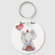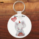 Um lindo e fofo elefante com um bolo de aniversário e um balão vermelho em forma de coração. Personalize-o com seu próprio texto para obter um presente exclusivo. Da minha cor d'água de pintura original no papel
