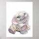 Esta adorável impressão de berçário apresenta um elefante bebê cinza sentado no chão com um hula-hoop ao redor da cintura.