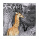 Uma girafa de bebê muito bonita e colorida numa fotografia a preto e branco.