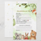 Make your celebration more fun and meaningful with this woodland animals baby shower baby predictions and advice card. This cute design features adorable animals like a fox, bear, bunny, and koala with soft greenery on a light background.
