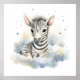 Delicately illustrated in soothing watercolors, this poster features a lovable zebra gracefully perched atop fluffy clouds, adding a touch of imagination and joy to your little one's space.