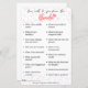 Jogo divertido para os amigos da noiva, vem com 16 perguntas. Você pode adicionar um prêmio ou uma penalidade para torná-lo ainda mais divertido