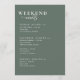 Bem-vindos aos seus convidados em estilo com este cartão de fim de semana do casamento sábio. Esta nota de boas-vindas do casamento permite-te criar facilmente um itinerário de casamento personalizado para o teu fim de semana especial, assegurando que os teus convidados tenham todas as informações de que precisam. O design mínimo complementa qualquer estilo de casamento moderno, fazer a adição perfeita ao seu saco de boas-vindas de casamento quando os seus hóspedes entrarem nos seus quartos!