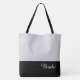 Esta bela bolsa de dedos para a frente mostra a palavra "noiva" em cor de texto branco sobre preto com a bolsa de dedos superior em Matte Silver personalizado Tem bastante espaço para texto personalizado. Os gráficos e o texto estão em ambos os lados desta bolsa de tote. Alça preta. Personalize mais ou mais comprares, conforme mostrado.