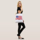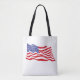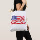 Este saco de tote de tamanho médio é mostrado com um impressão patriótico de Bandeira dos EUA. Personalize este item ou comprar como está.