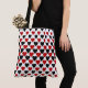 Esta bolsa de tote personalizada tem corações vermelhos e negros em um fundo branco. Esta bolsa de tote faz um presente de excelente para qualquer ocasião.