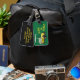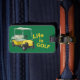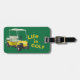 Você pode personalizar o nome e endereço na parte de trás desta etiqueta de bagagem "A vida é golfe". As cores são verdes, amarelas e pretas e a design apresenta um carrinho de golfe preto e amarelo. Perfeito para aqueles que adoram golfe. Coloque na sua bolsa de golfe quando você estiver viagem. Você pode mudar a cor do fundo verde e preto.