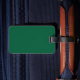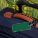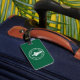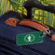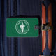 Etiqueta de bagagens com design com pavilhão de Bangkok, capital do Reino da Tailândia; bandeira verde com ilustração branca de um elefante no centro