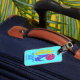 Colorida Etiqueta de Bagagem de Arte do Lobo Coyote. Personalize isso adicionando seu nome, informações de contato e/ou uma mensagem divertida. A cor de fundo pode ser personalizada. Personalize isto adicionando seu nome, iniciais ou uma mensagem fofa. Coiote azul - ou é um lobo - sentado ao lado de um cacto do deserto e uivando na lua. Este design de arte é feito em minhas fatias cruzadas de estilo colorido. A criatura é azul, o cacto é amarelo e verde e a lua são tons de laranja e vermelho. Quer você goste de design sudoeste ou só tem vontade de uivar na lua...