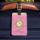 Em um fundo cor-de-rosa profundo está um elegante círculo dourado esboço design espiral de uma tartaruga marinha com uma esfera dourada florescida de ouro onde você pode personalizá-la e abaixo que pode ser personalizada com um nome para torná-la única e exclusivamente sua. Vertigens cerâmicos.